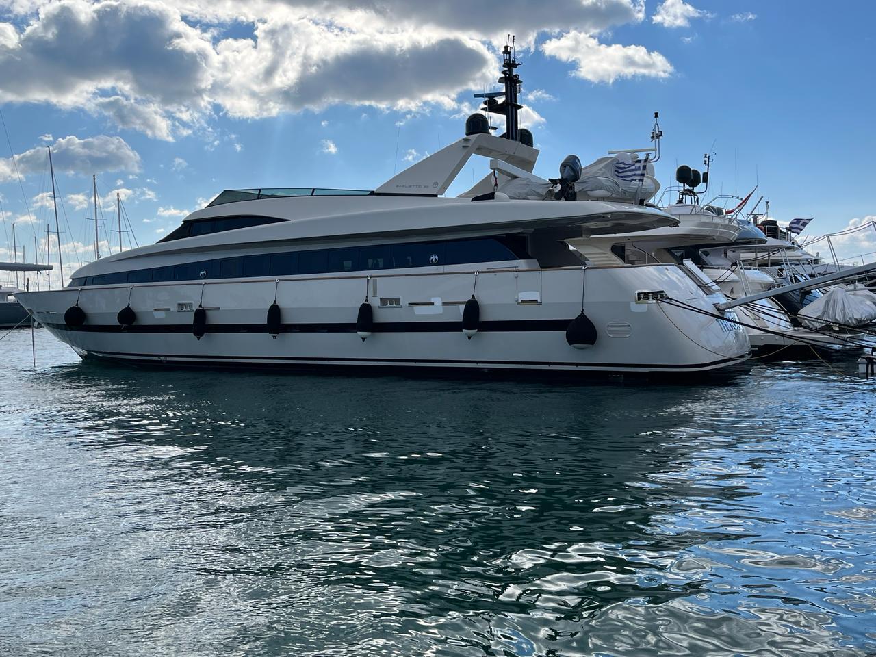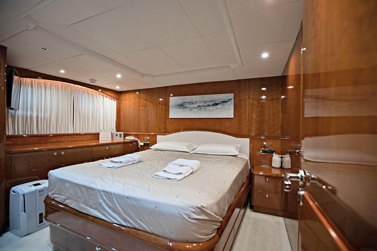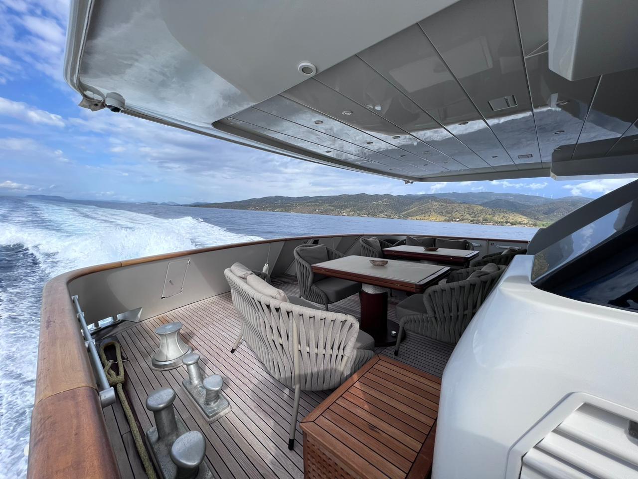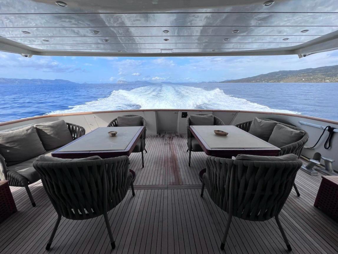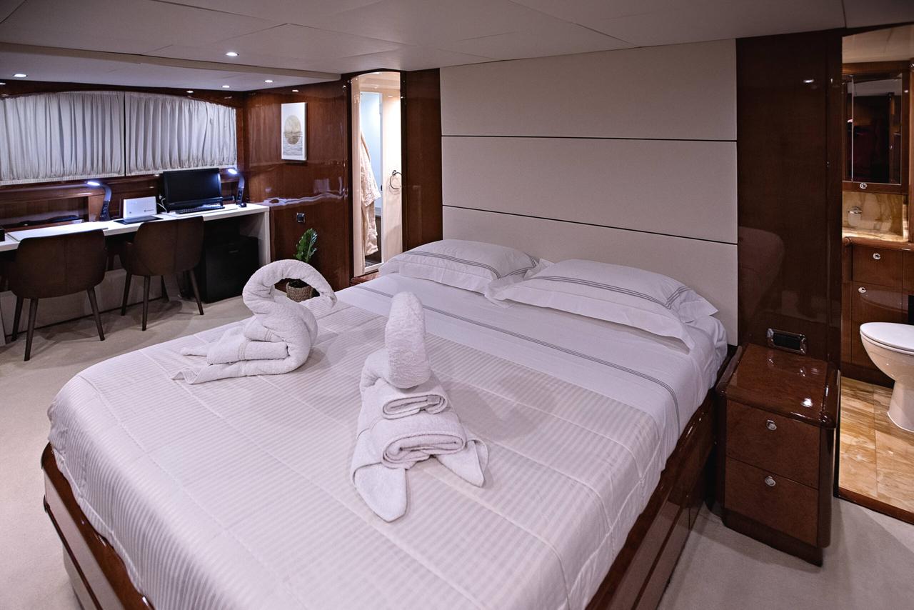 … is our wonderful Baglietto 101, with aluminum hull and superstructure that can accommodate up to 8-10 guests in her 4 cabins in the lower deck all with a/c and en suite facilities.