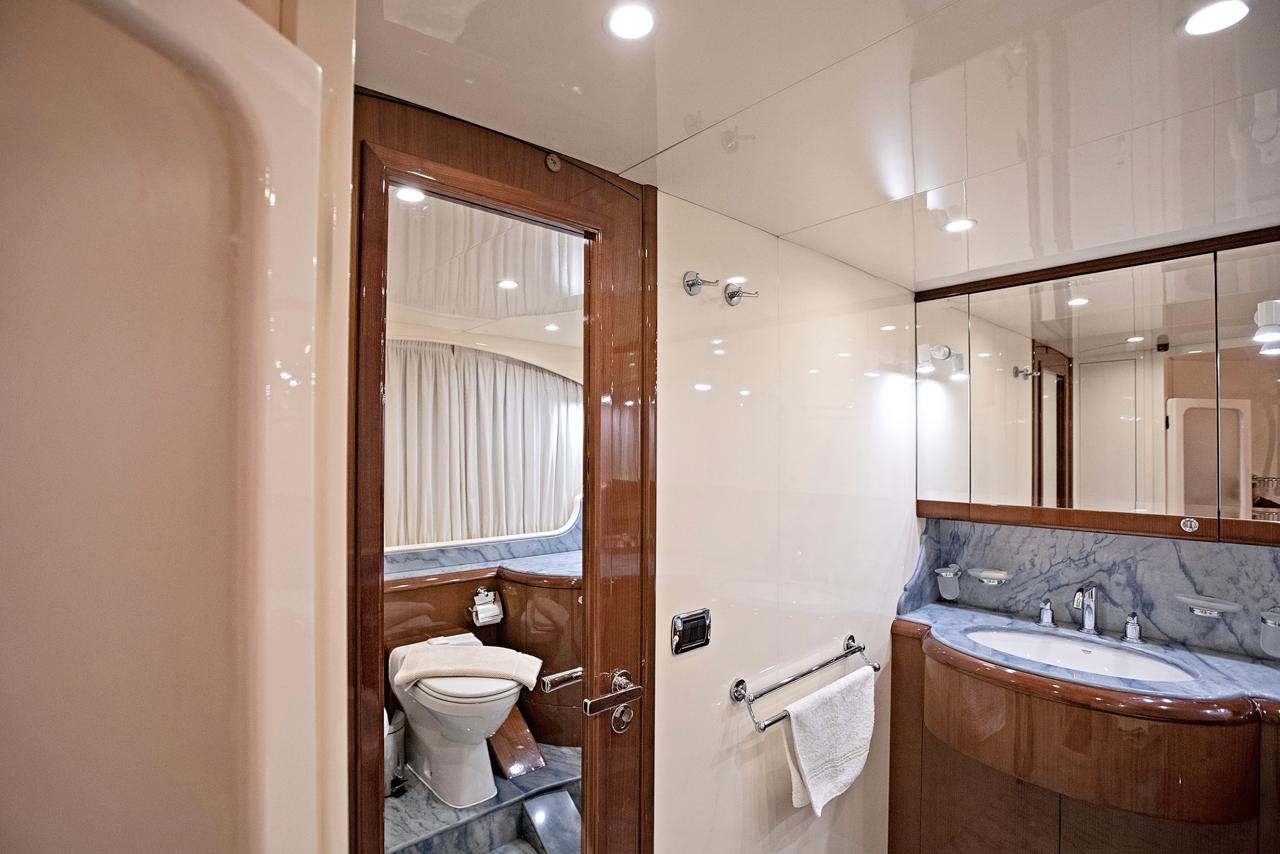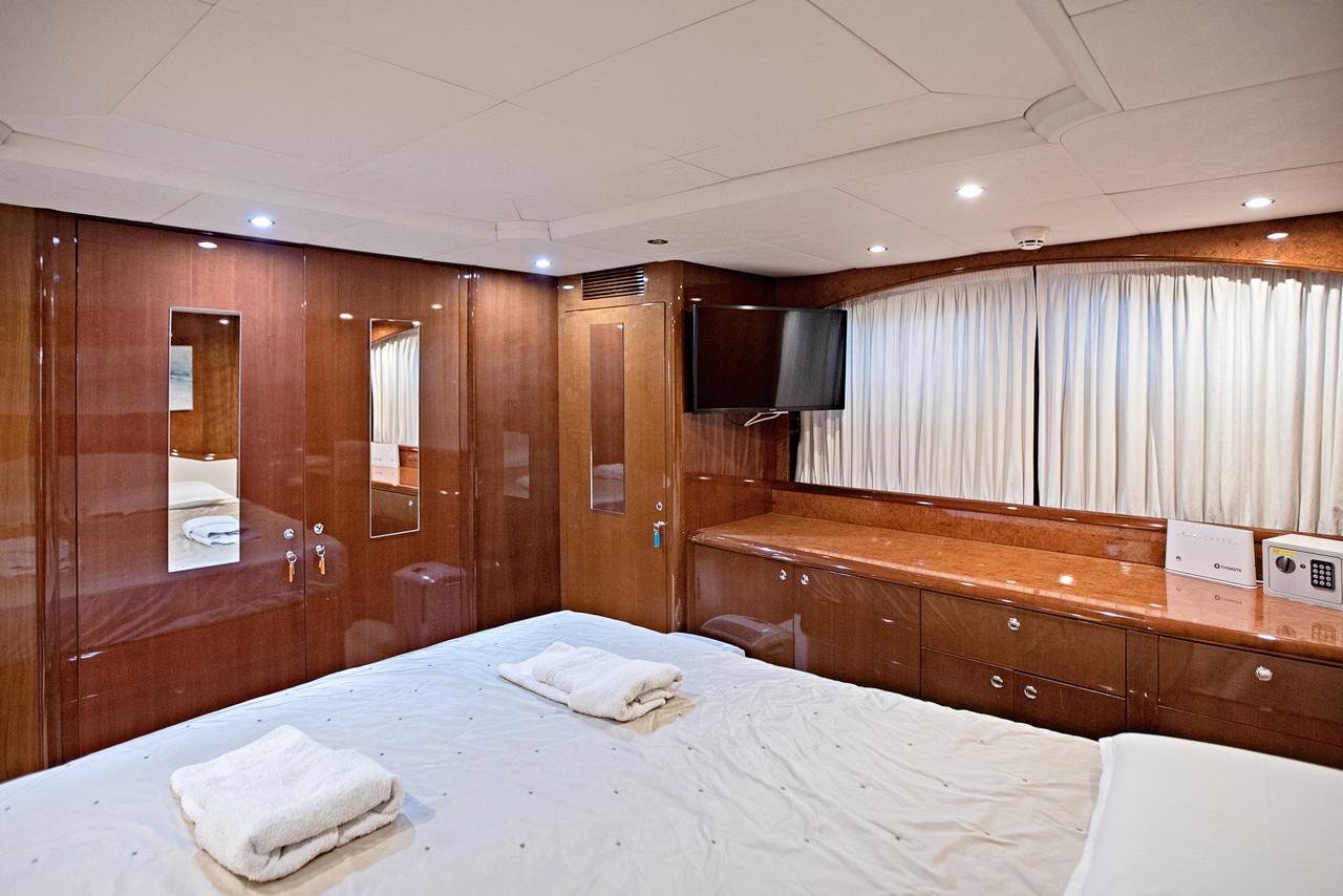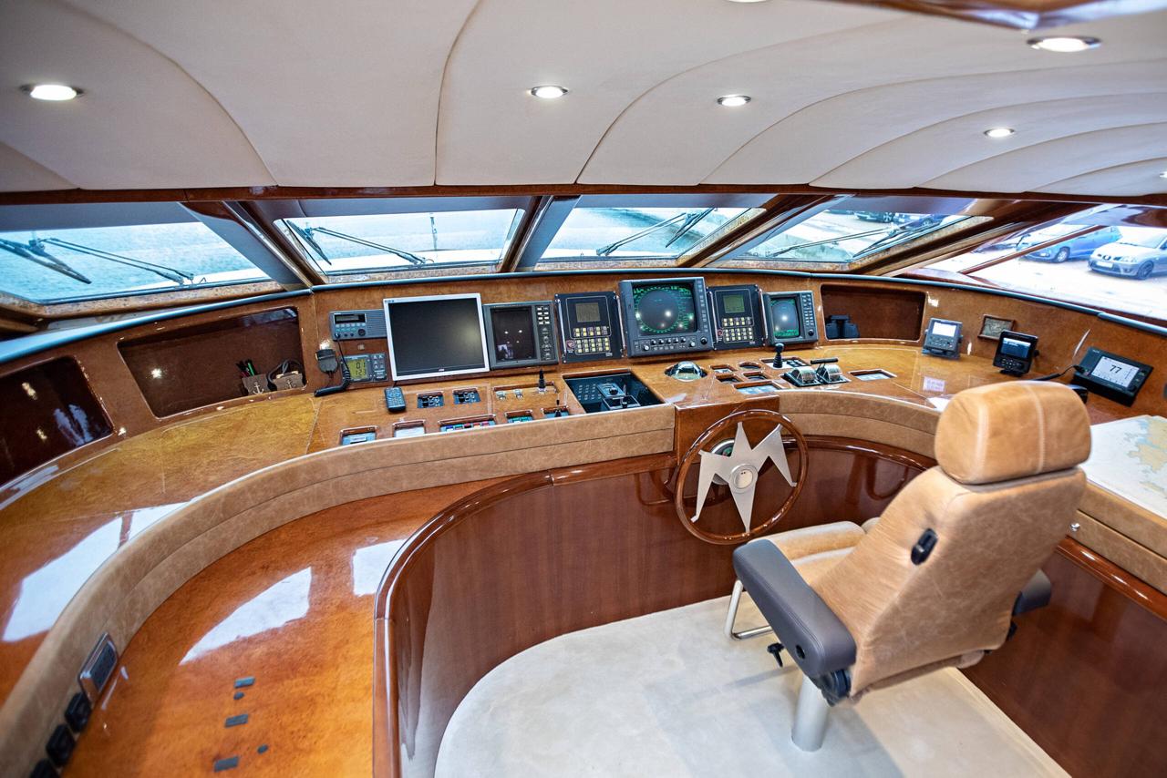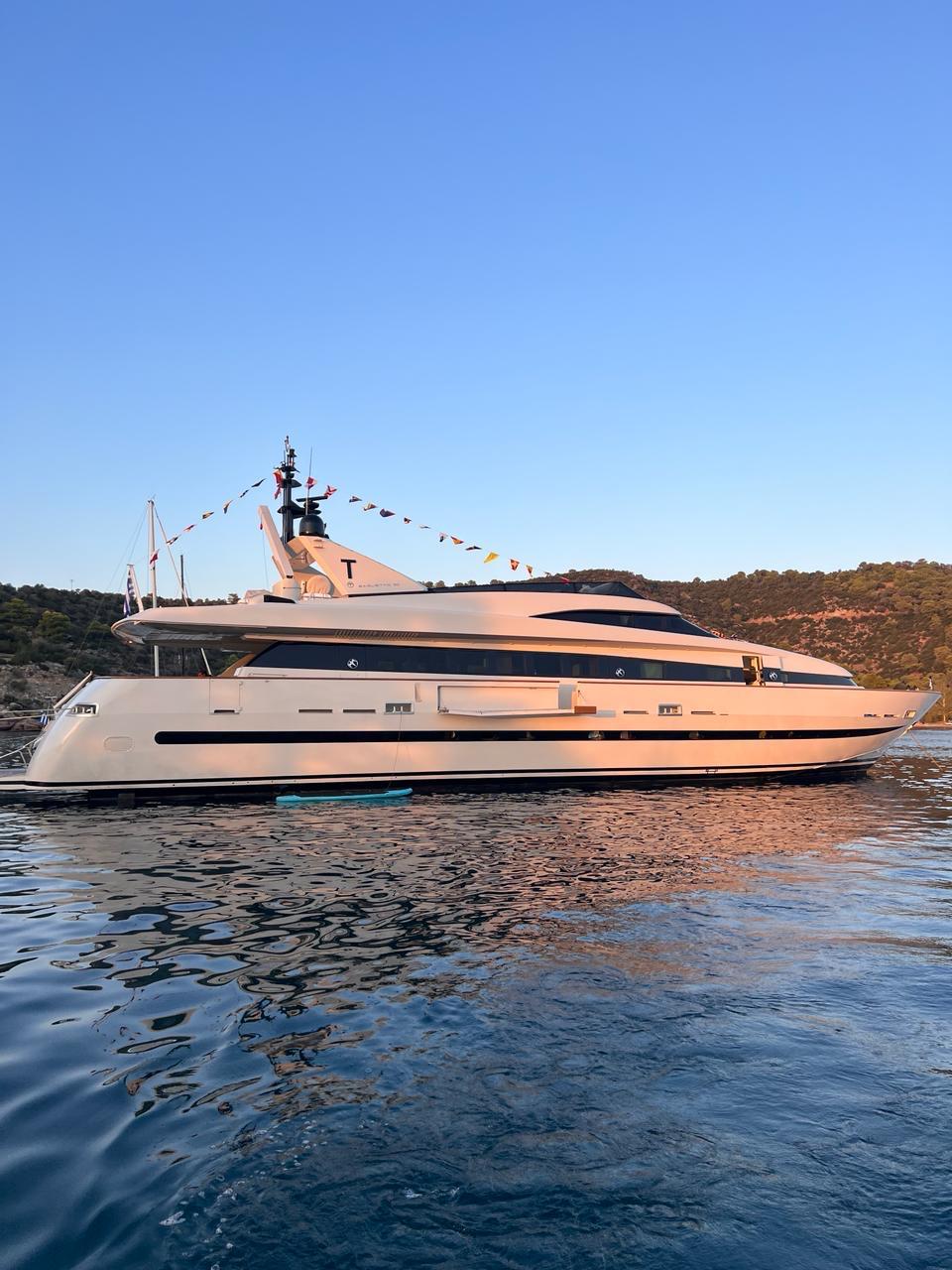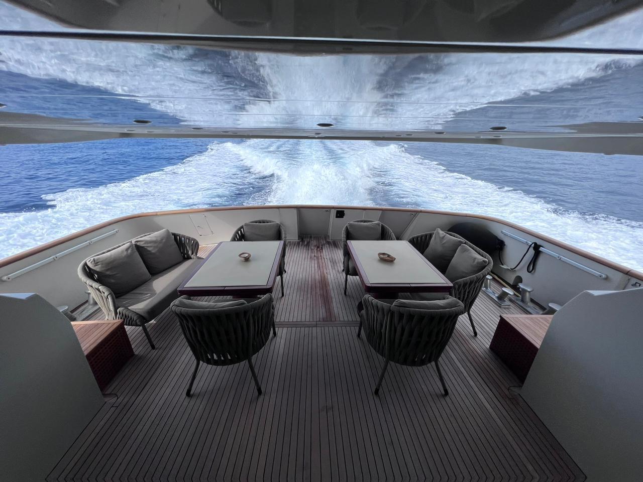 … is our wonderful Baglietto 101, with aluminum hull and superstructure that can accommodate up to 8-10 guests in her 4 cabins in the lower deck all with a/c and en suite facilities.