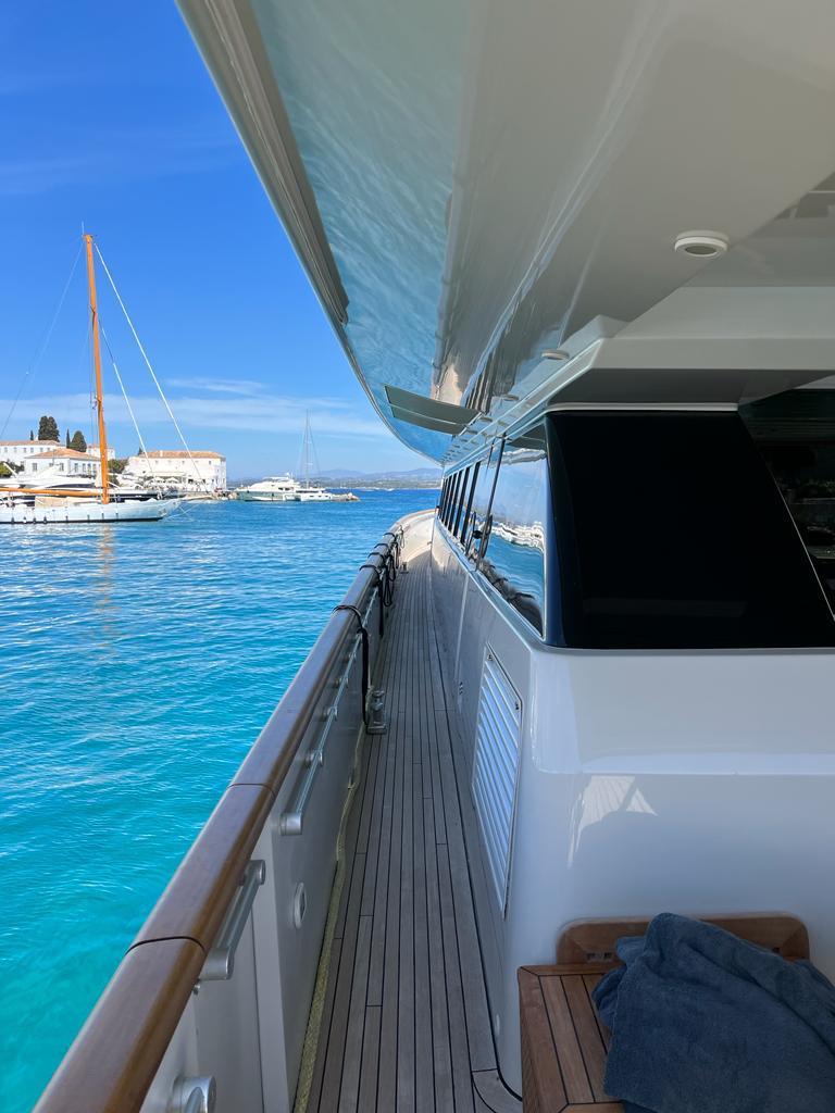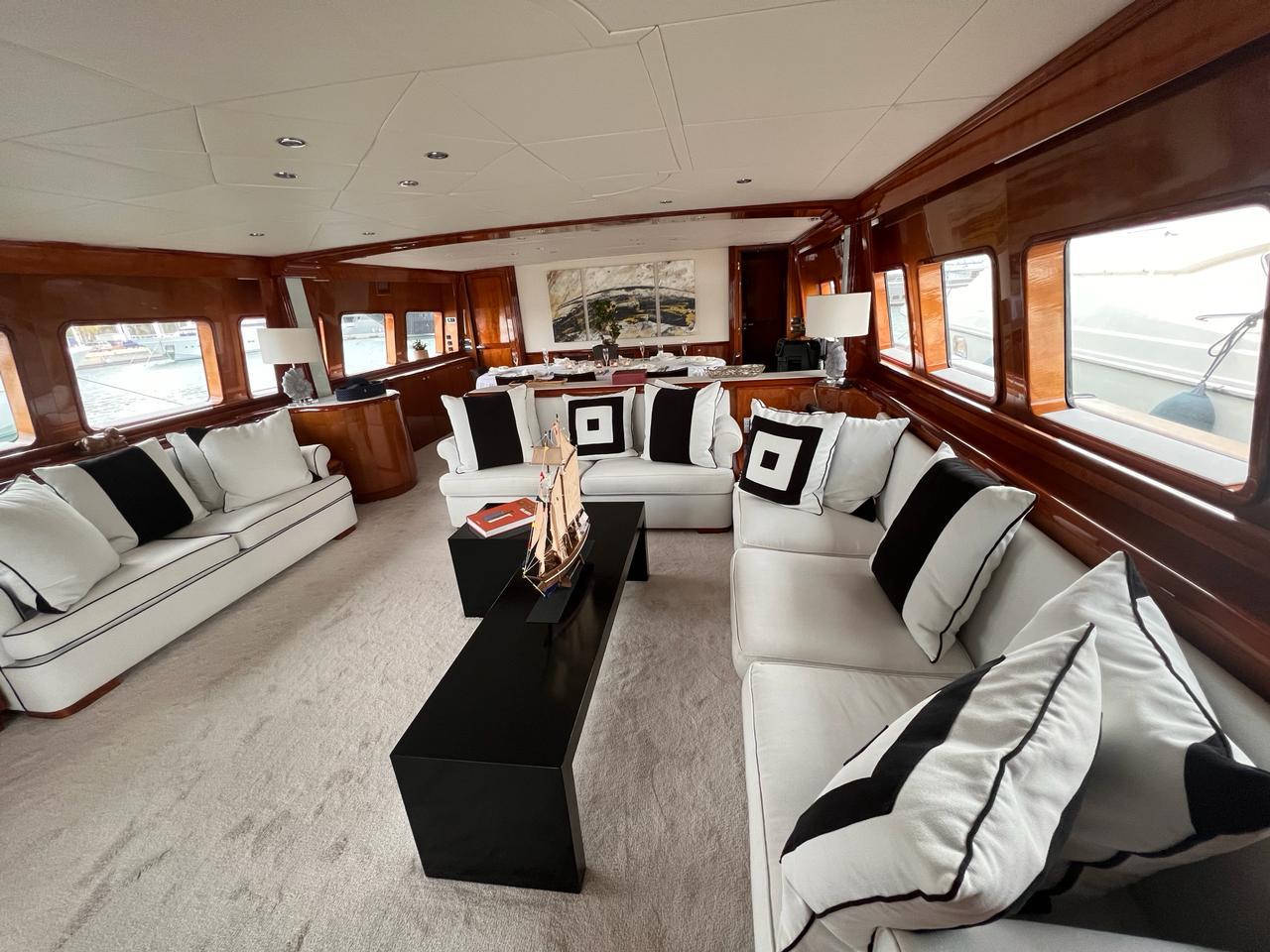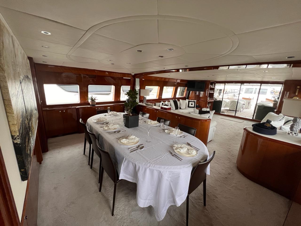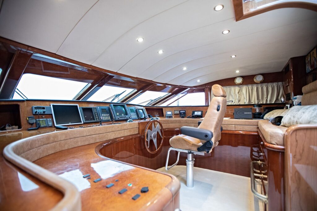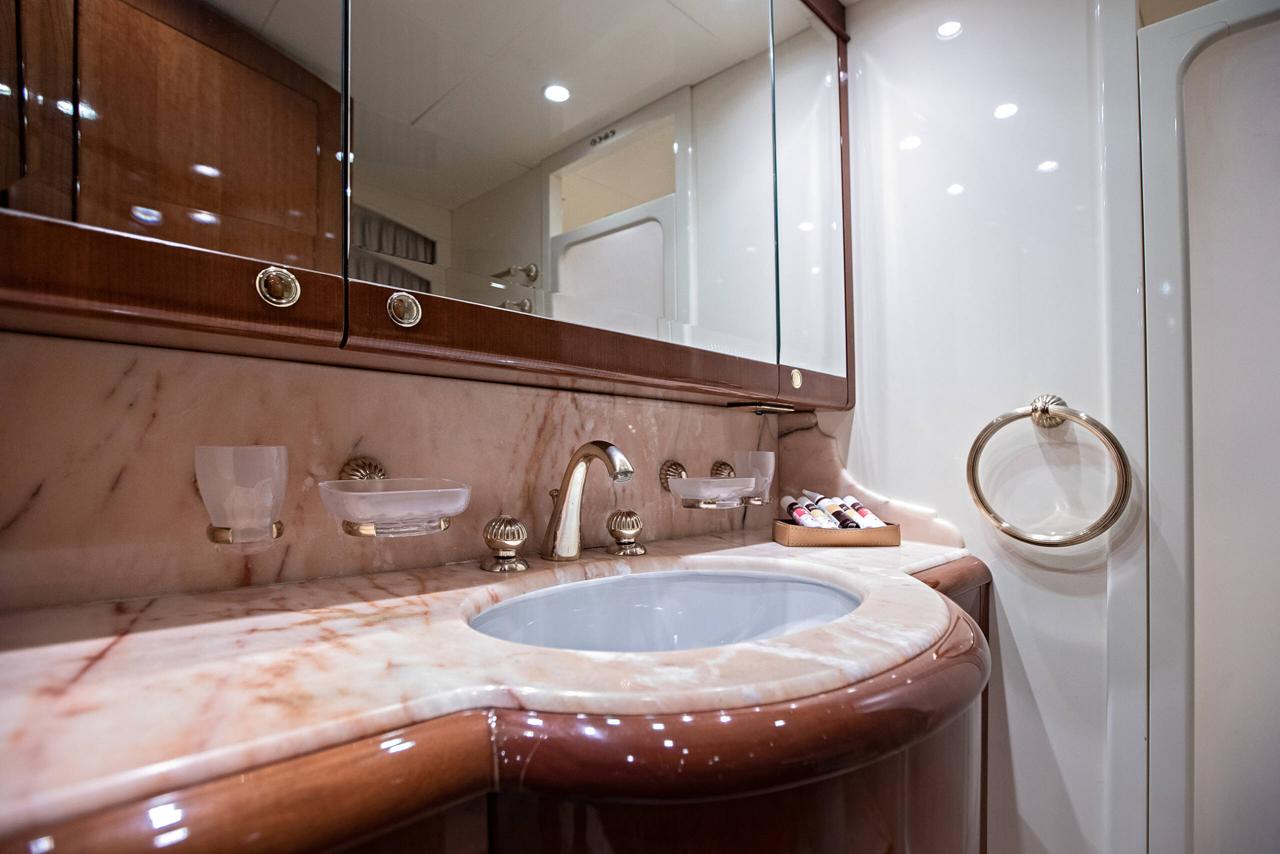 … is our wonderful Baglietto 101, with aluminum hull and superstructure that can accommodate up to 8-10 guests in her 4 cabins in the lower deck all with a/c and en suite facilities.