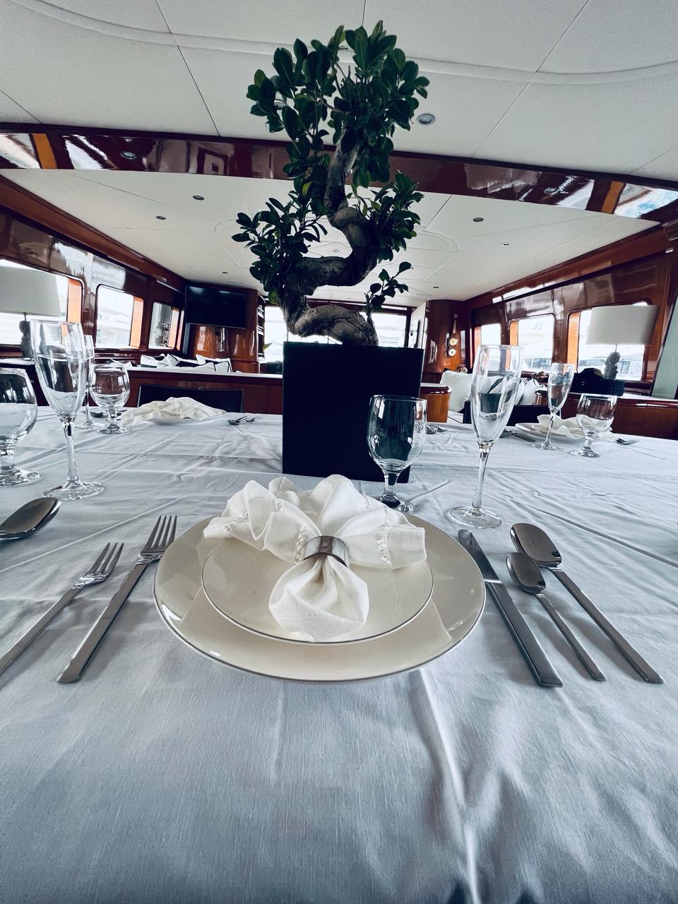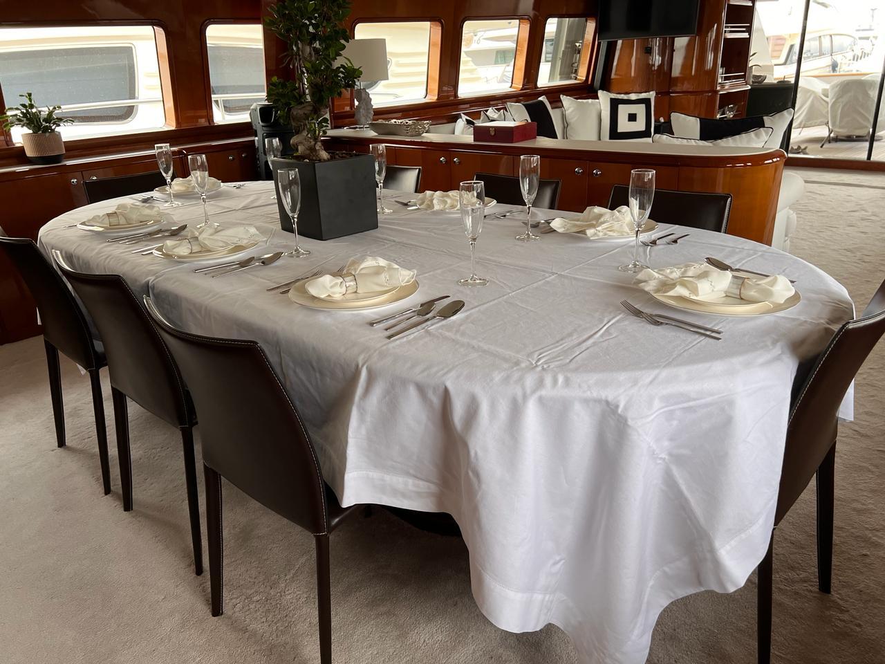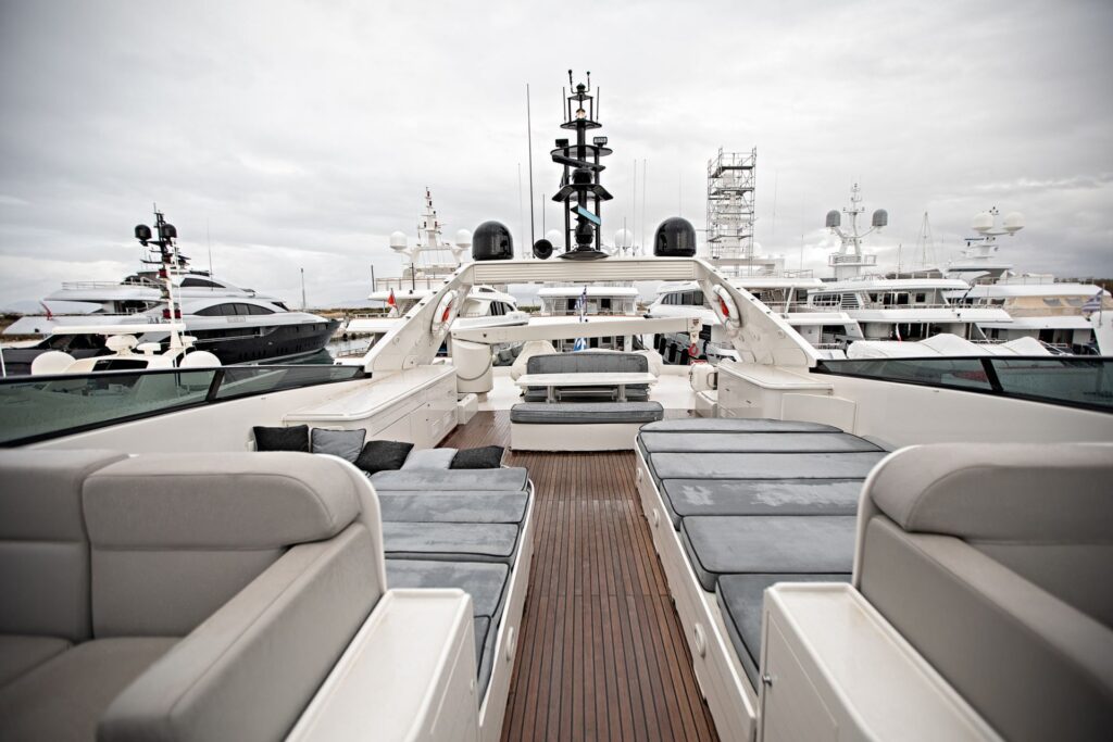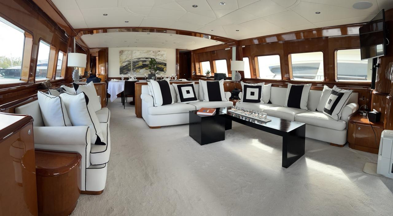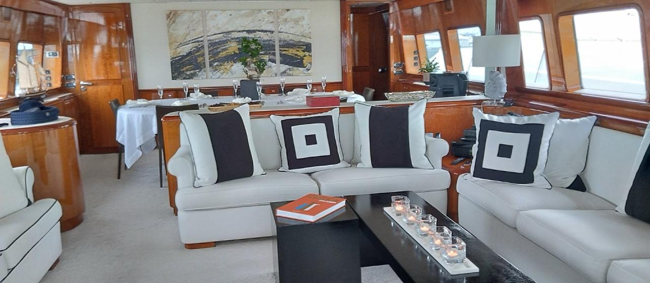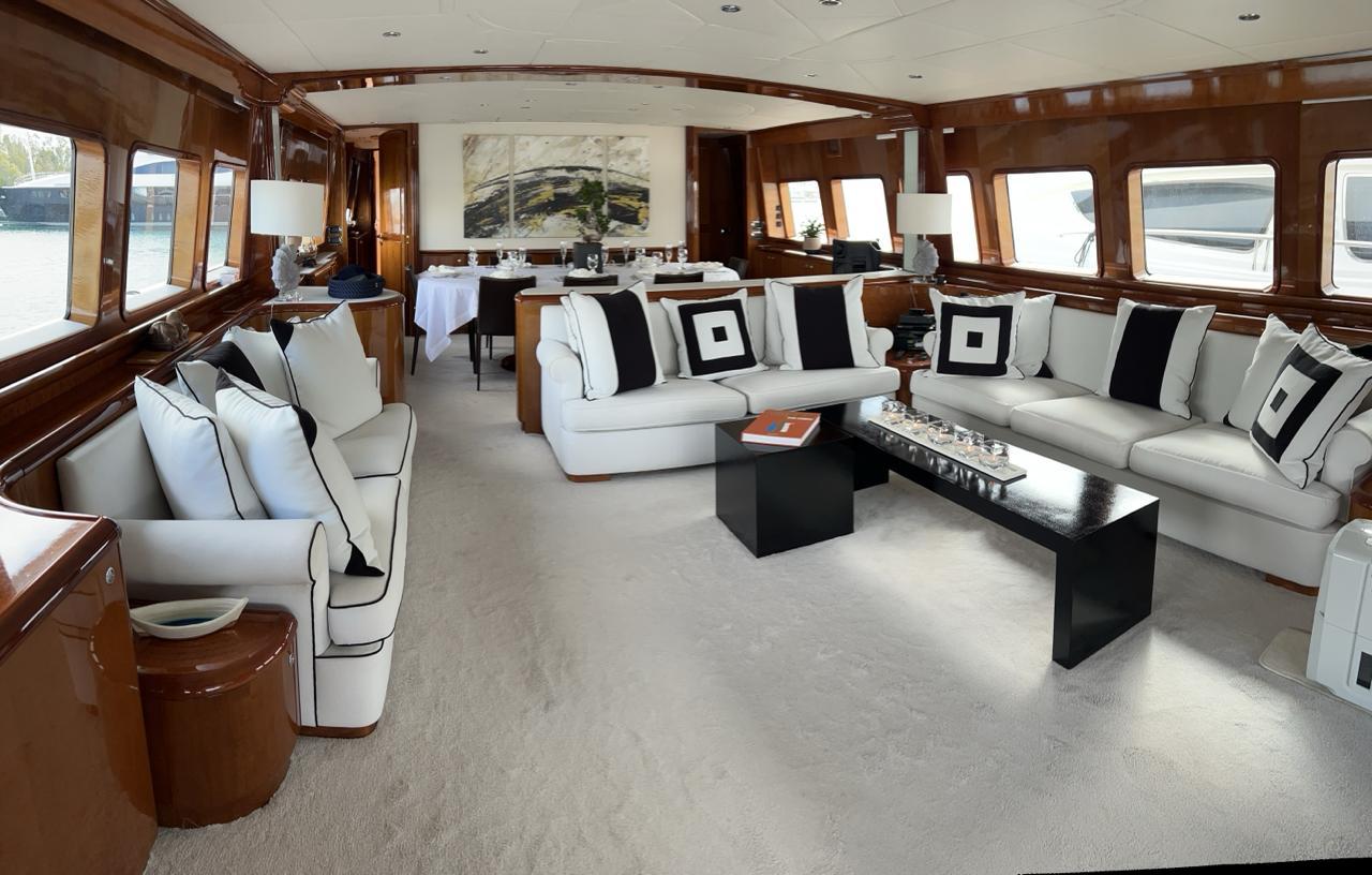 … is our wonderful Baglietto 101, with aluminum hull and superstructure that can accommodate up to 8-10 guests in her 4 cabins in the lower deck all with a/c and en suite facilities.