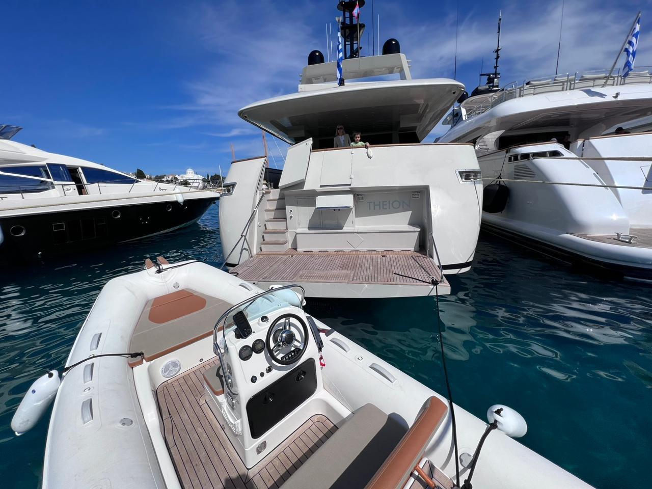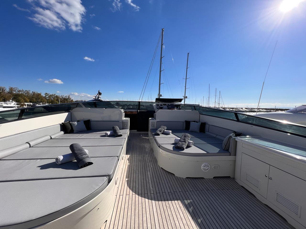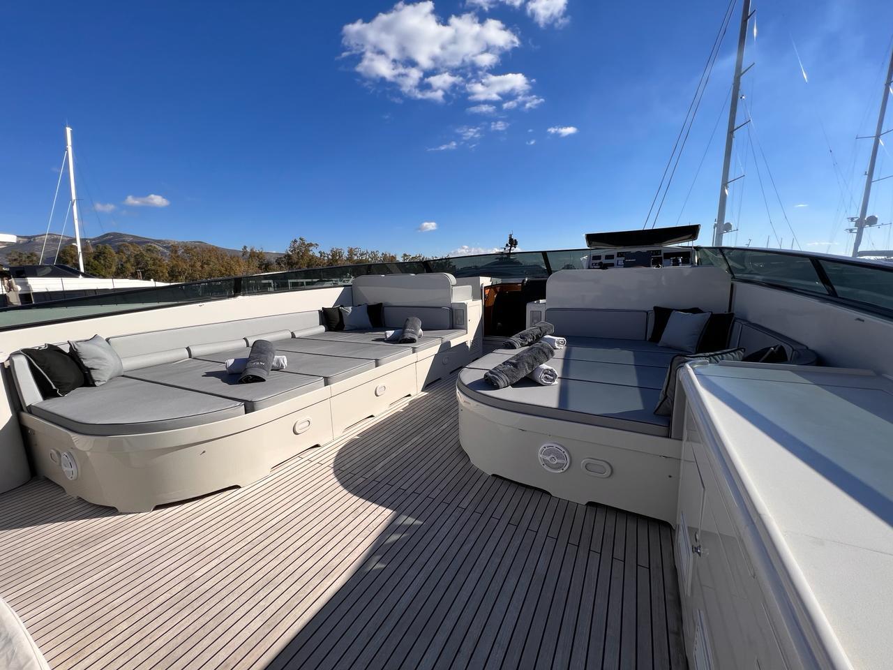 THEION’s interior is classic and elegant offering a sense of opulence when step on board. Her ample spaces along with her comfortable dining areas are ideal for gathering with family and friends. You can enjoy a fine dining experience either inside the yacht or at the aft deck, relax on the flybridge’s sunbathing area with a cocktail or, if you are more into adrenaline, have fun with her various water toys!