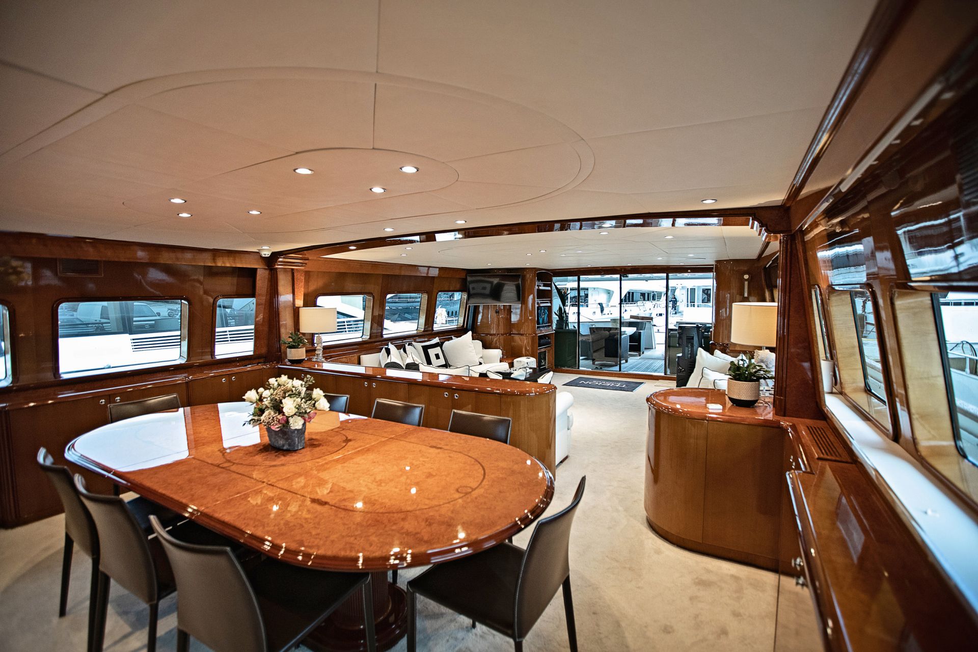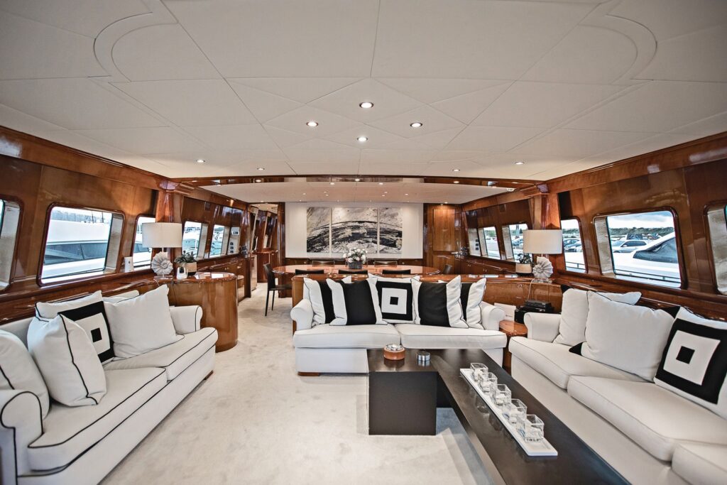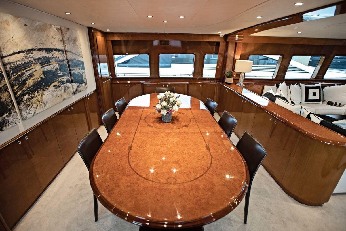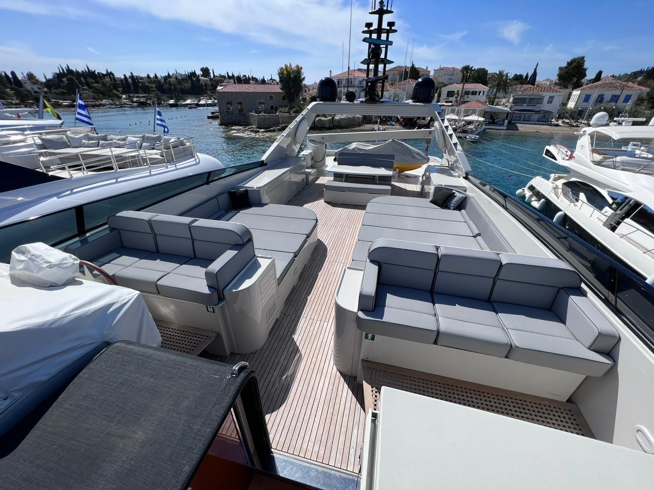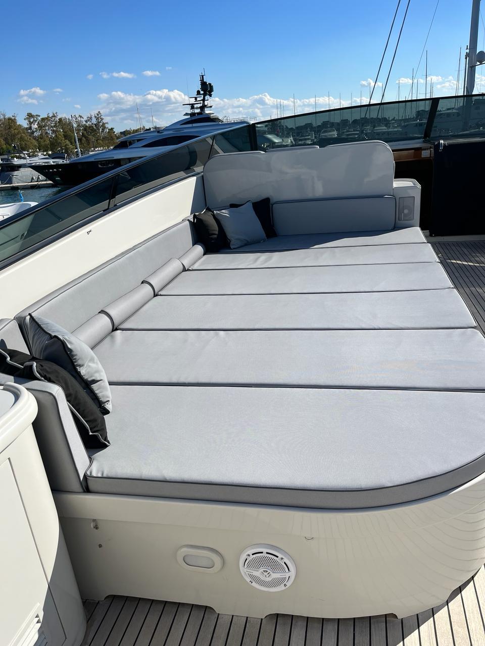 THEION’s interior is classic and elegant offering a sense of opulence when step on board. Her ample spaces along with her comfortable dining areas are ideal for gathering with family and friends. You can enjoy a fine dining experience either inside the yacht or at the aft deck, relax on the flybridge’s sunbathing area with a cocktail or, if you are more into adrenaline, have fun with her various water toys!