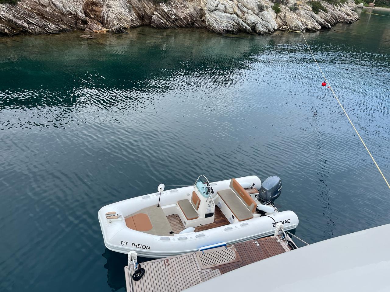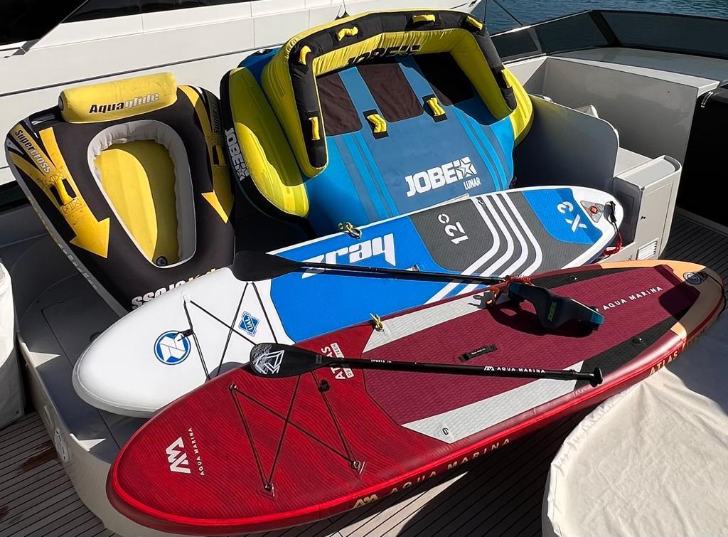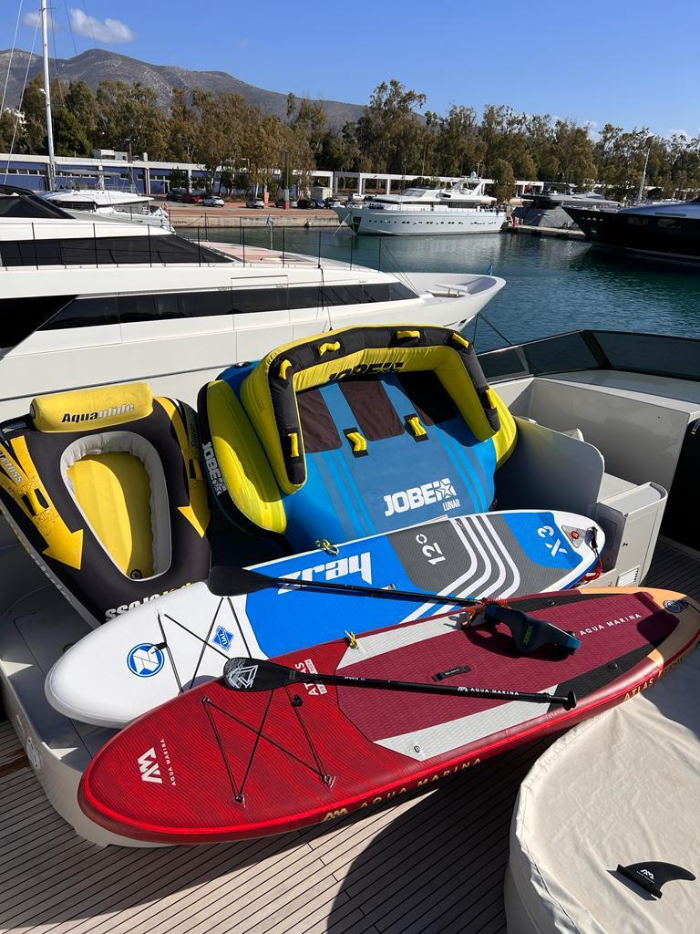 Tender: Zodiac 5m (new model, 2022) with a Yamaha ob 115hp, SeaDoo 3 seater (new model 2022) 300 hp with audio system, SUP, Wakeboard, Canoe for 2 pax., Inflatable sofa for 3 pax., Tubes, 2 X inflatable platforms, Waterskis, Seabob, Snorkeling & fishing equipment